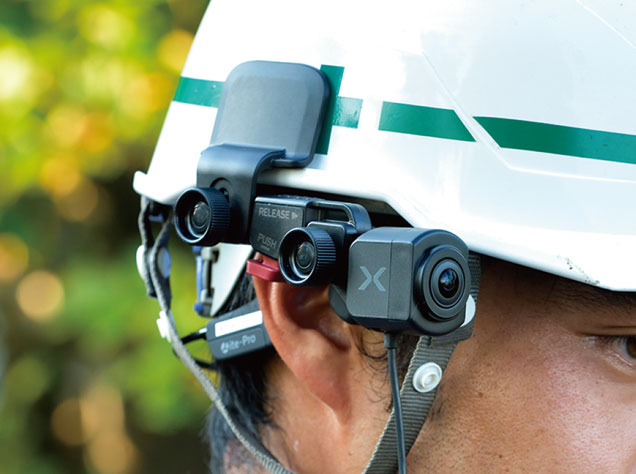 遠隔臨場システムの1つです。カメラを使用し、現場の映像と音声を遠隔地から双方向通信をします。現場確認の効率化に繋がります。