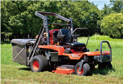 1800mmの高さまでリフトアップ可能な大容量の集草機を装備。排出の作業時間を短縮できます。